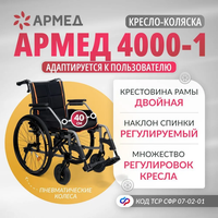 Кресло коляска инвалидная Армед 4000-1 сиденье 40см, пневмо колеса, прогулочная, механическая, складная для дома и улицы: сравнение цен, характеристики, фото, актуальное наличие и цены.