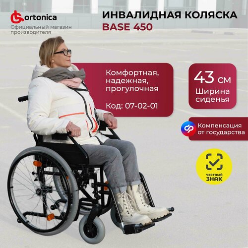 Купить Кресло — коляска инвалидная прогулочная Ortonica Olvia 10 / Base 450 ширина сиденья 43 см передние литые задние пневматические колеса, код 07-02-01 с доставкой по всей России.
