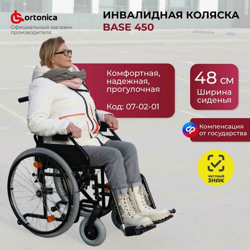 Купить Кресло — коляска инвалидная прогулочная Ortonica Olvia 10 / Base 450 ширина сиденья 48 см передние литые задние пневматические колеса, код 07-02-01 с доставкой по всей России.