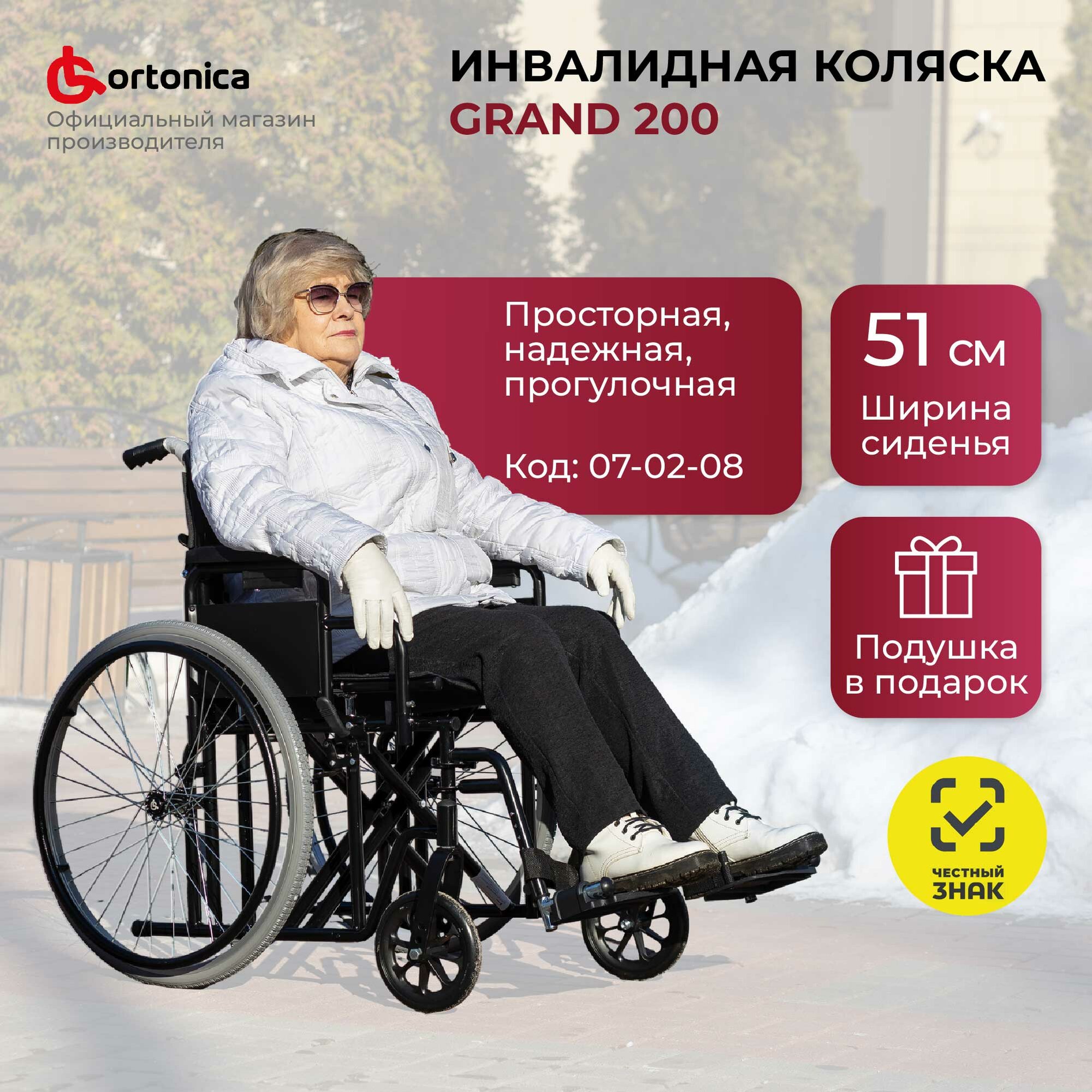 Купить Кресло-коляска инвалидная прогулочная повышенной грузоподъемности Ortonica Trend 25/Grand 200 51PU ширина сиденья 51 см литые/пневматические Код 07-02-08, 07-02-01 с доставкой по всей России.