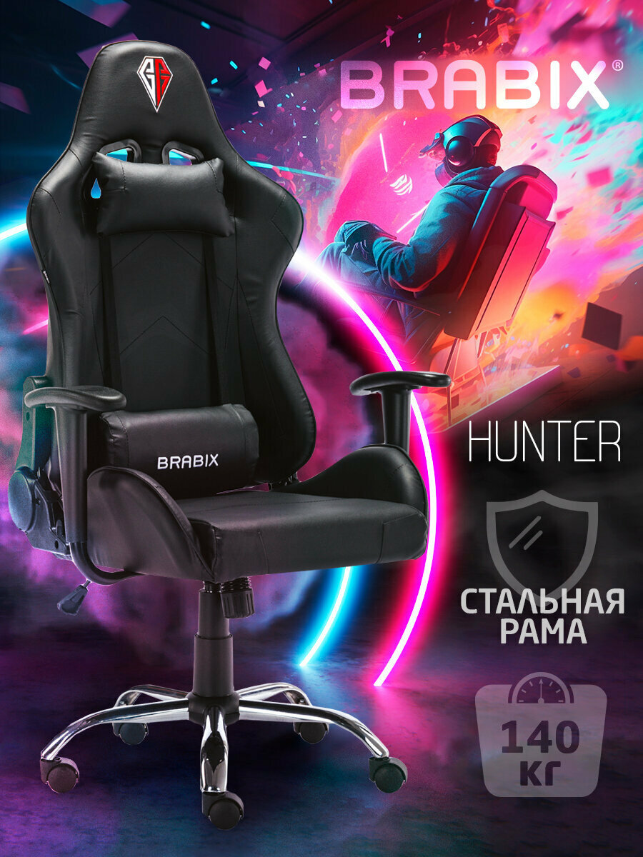 Кресло компьютерное игровое офисное (стул) Brabix Hunter Gm-130, две подушки, экокожа, черное, 532798: сравнение цен, характеристики, фото, актуальное наличие и цены.
