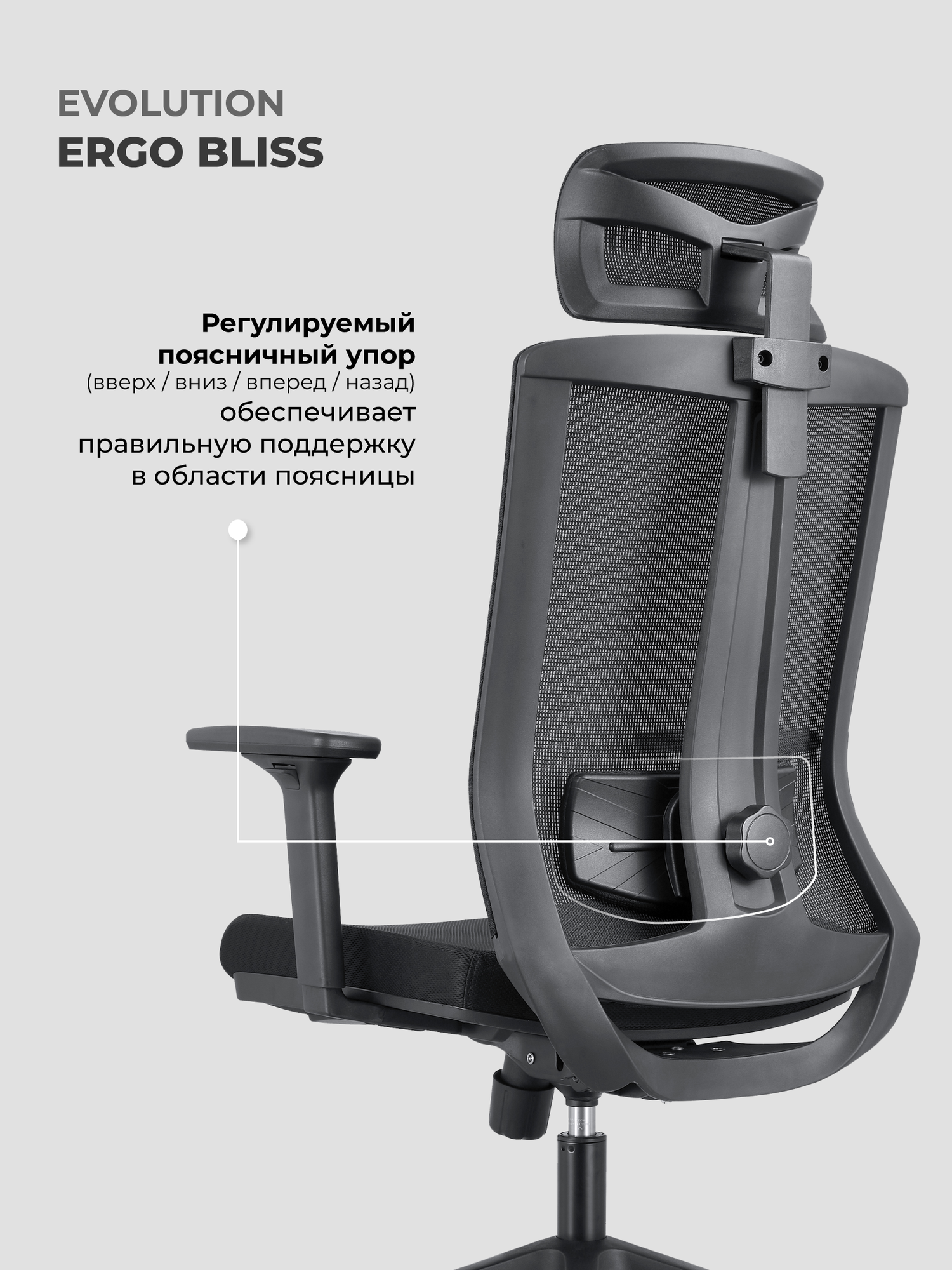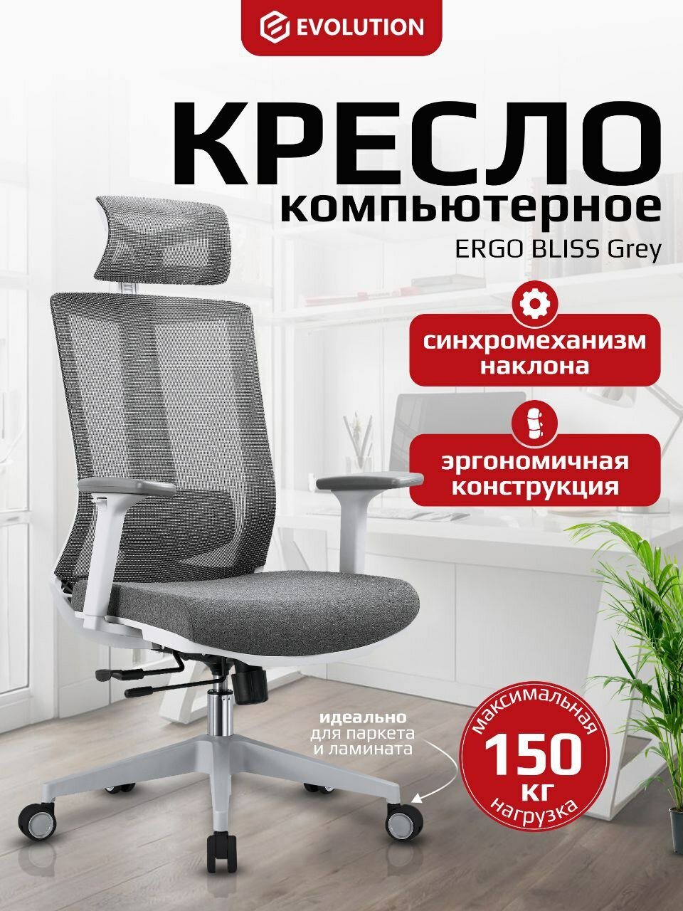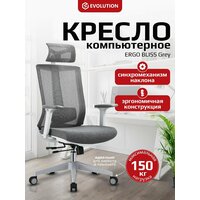 Кресло компьютерное EVOLUTION ERGO BLISS Grey, Синхромеханизм, Сетчатая спинка