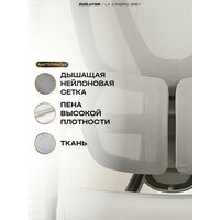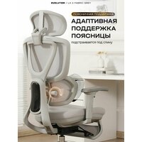 Кресло компьютерное EVOLUTION LX 2 Fabric Grey, для офиса и дома, 3D подлокотниками и подставкой для ног, сетка/ткань