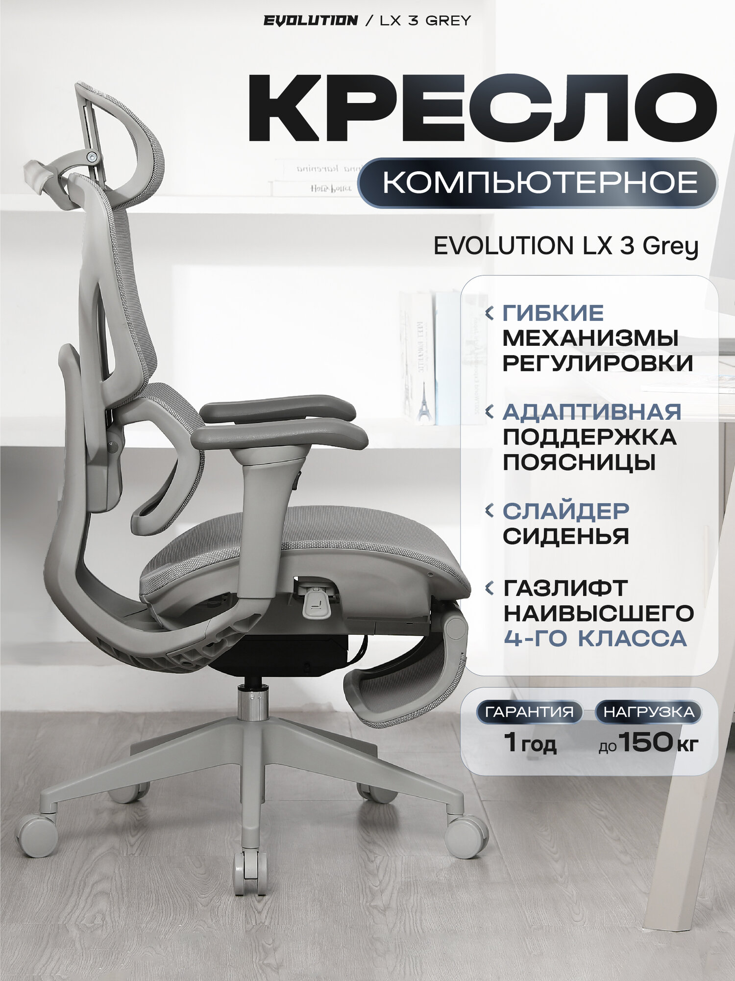 Купить Кресло компьютерное EVOLUTION LX 3 Grey, офисное, эргономичное с 4D подлокотниками, подголовником, сетка с доставкой по всей России. Кресло компьютерное EVOLUTION LX 3 Grey, офисное, эргономичное с 4D подлокотниками, подголовником, сетка: сравнение цен, характеристики, фото, актуальное наличие и цены.