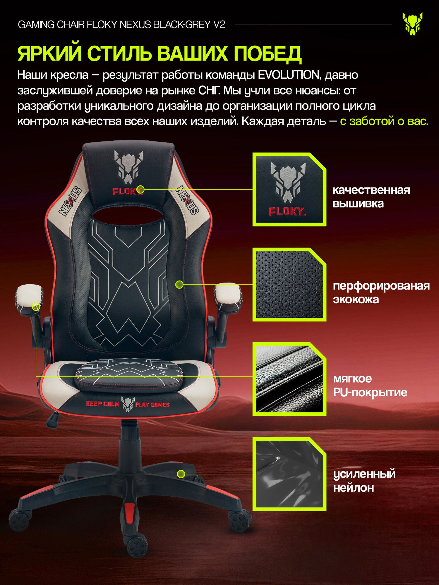 Компьютерное кресло FLOKY NEXUS Black-Grey V2