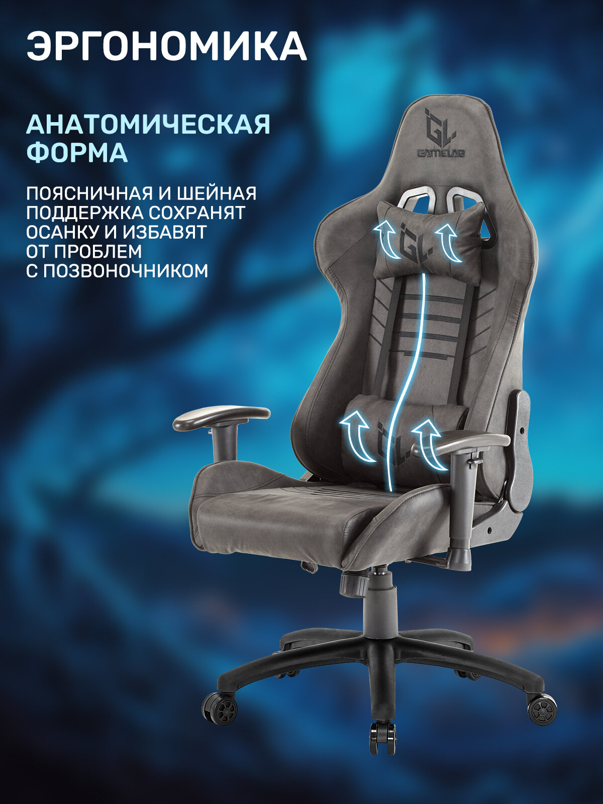 Купить Игровое кресло компьютерное GAMELAB WARLOCK Grey, серый, искусственная кожа с доставкой по всей России.