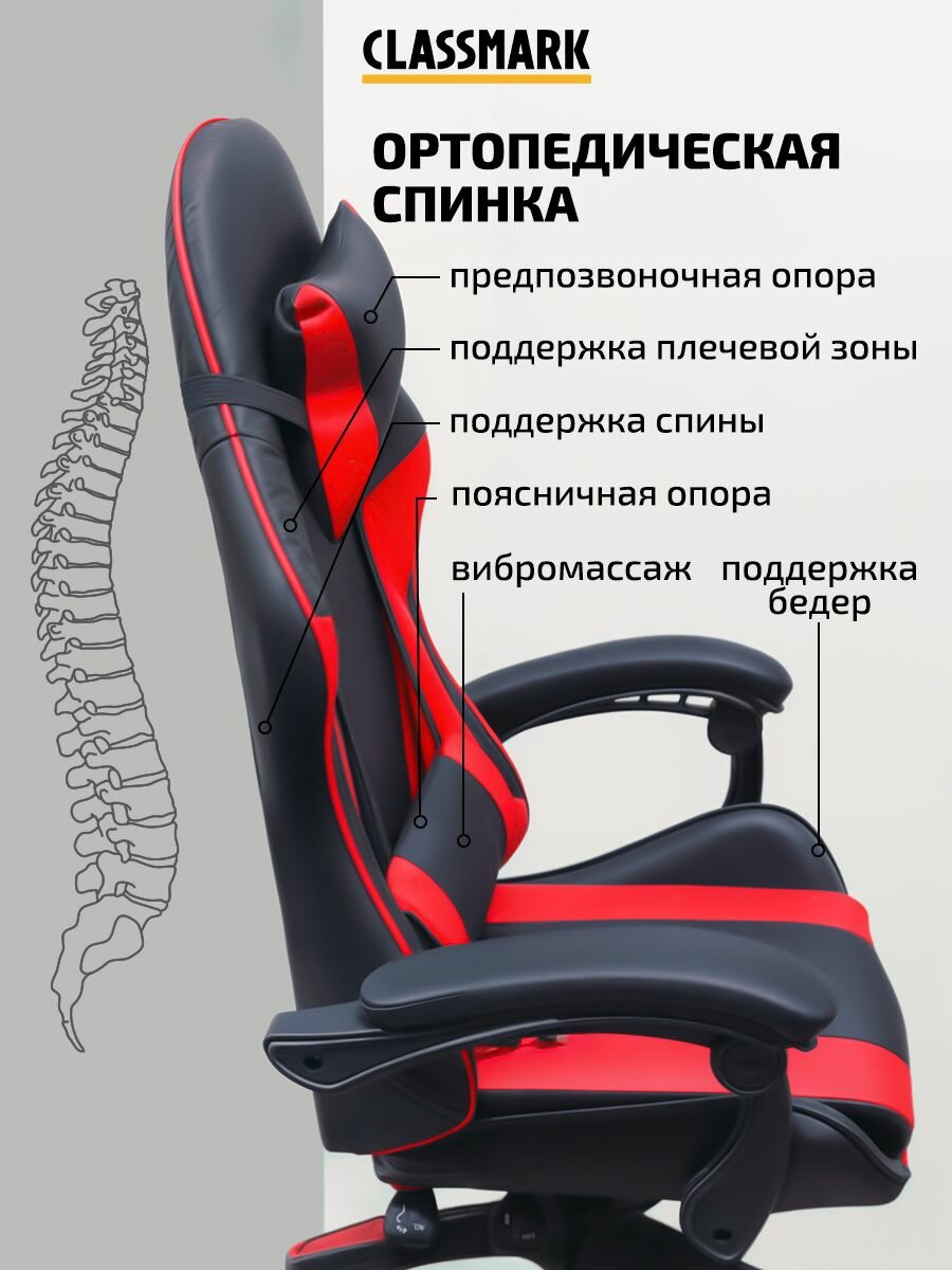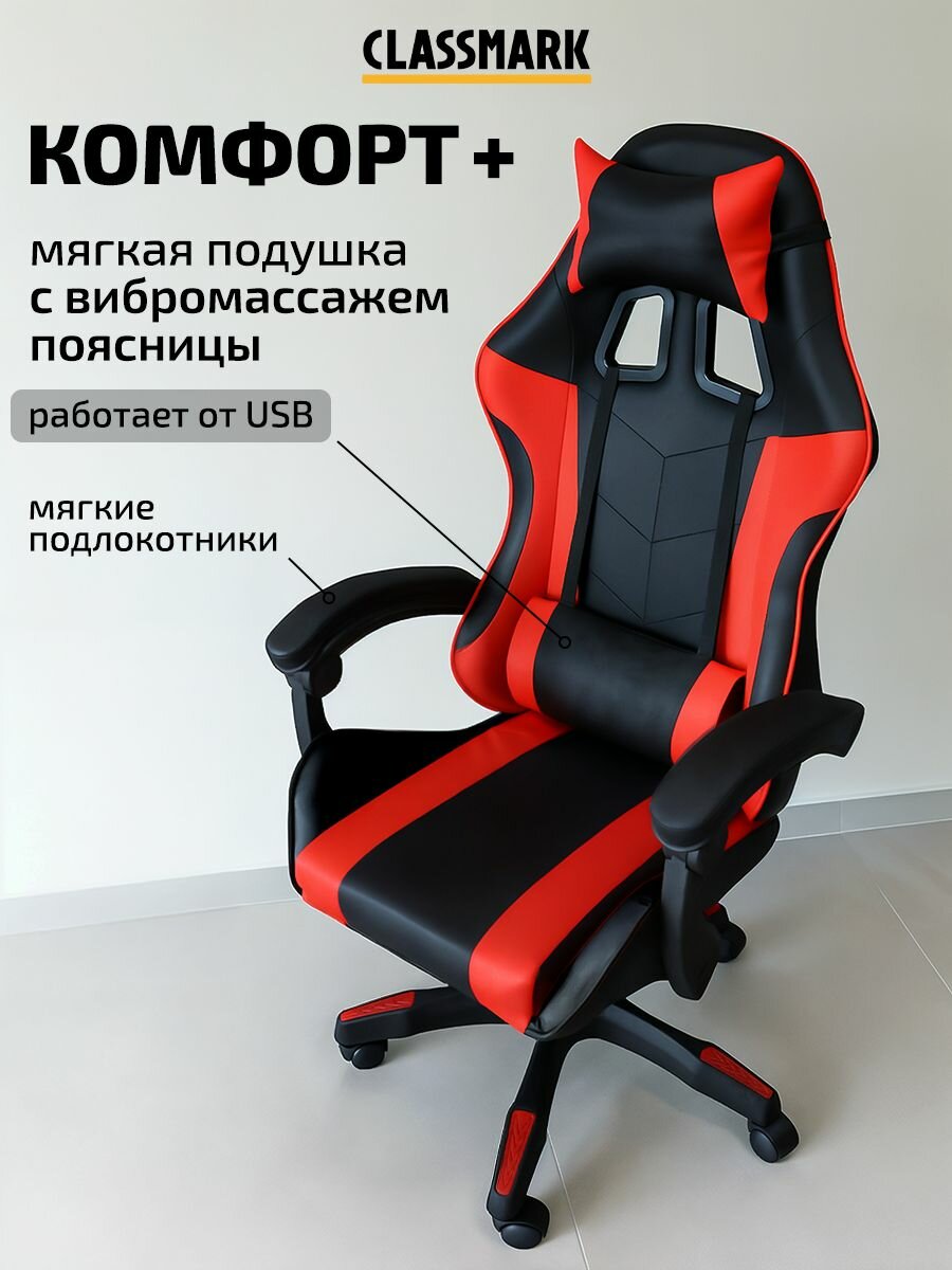Купить Кресло компьютерное игровое Classmark с подлокотниками и подставкой для ног, геймерски стул, экокожа с доставкой по всей России.