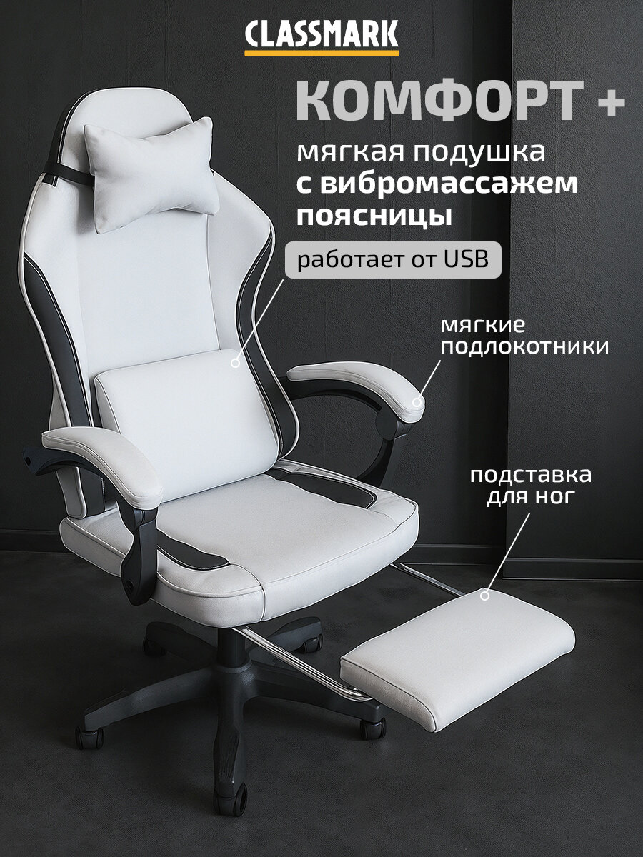 Купить Кресло компьютерное игровое Classmark с подлокотниками и подставкой для ног, геймерски стул, экокожа с доставкой по всей России.