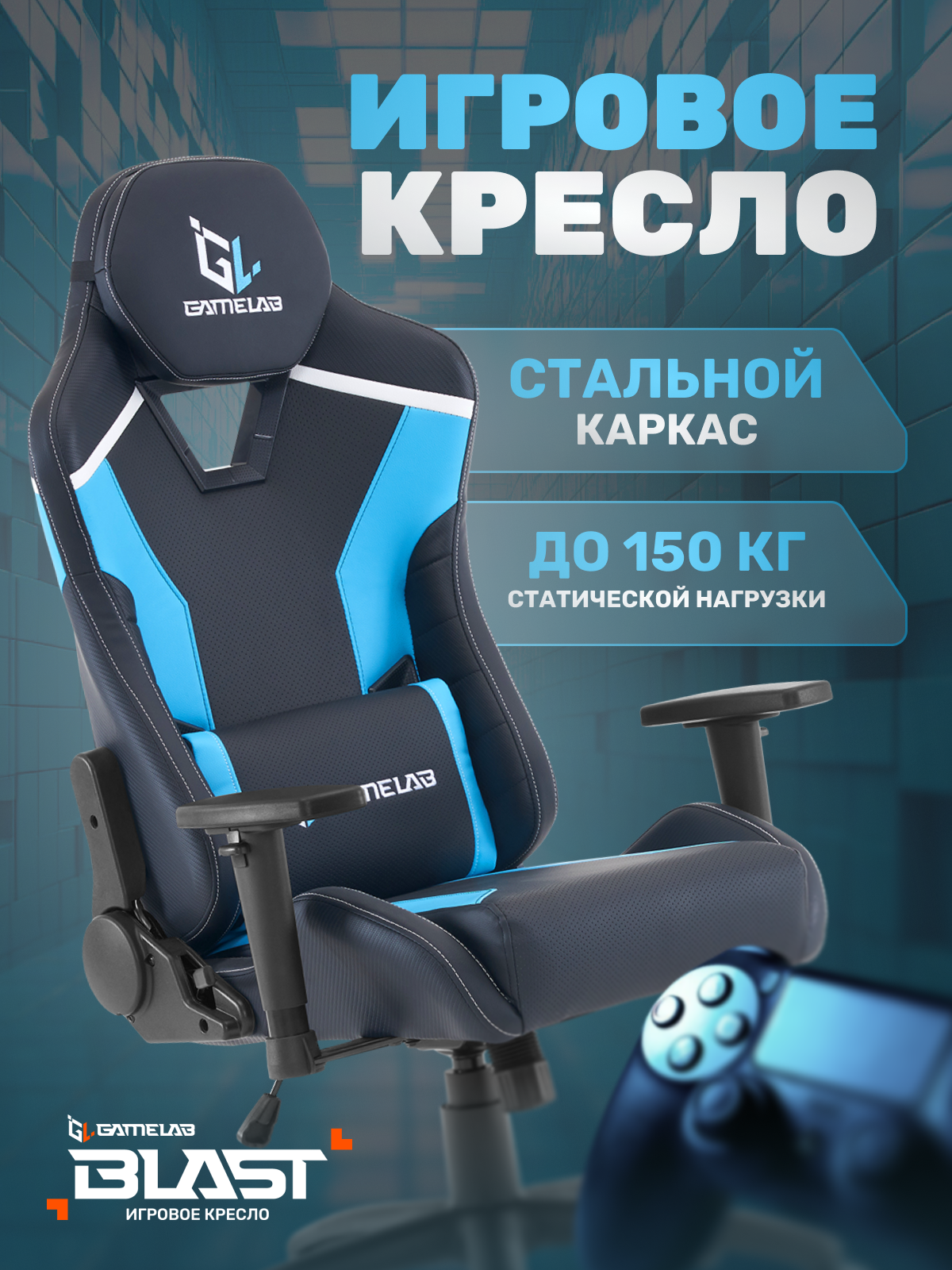 Купить Игровое кресло компьютерное GAMELAB BLAST Azure Blue, черный/синий, экокожа с доставкой по всей России.
