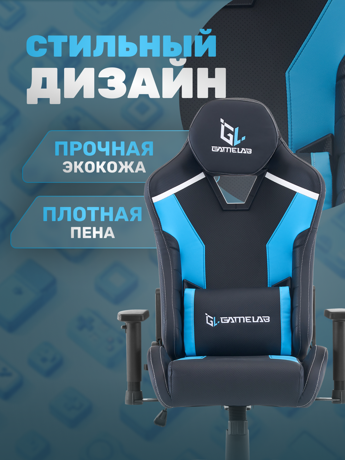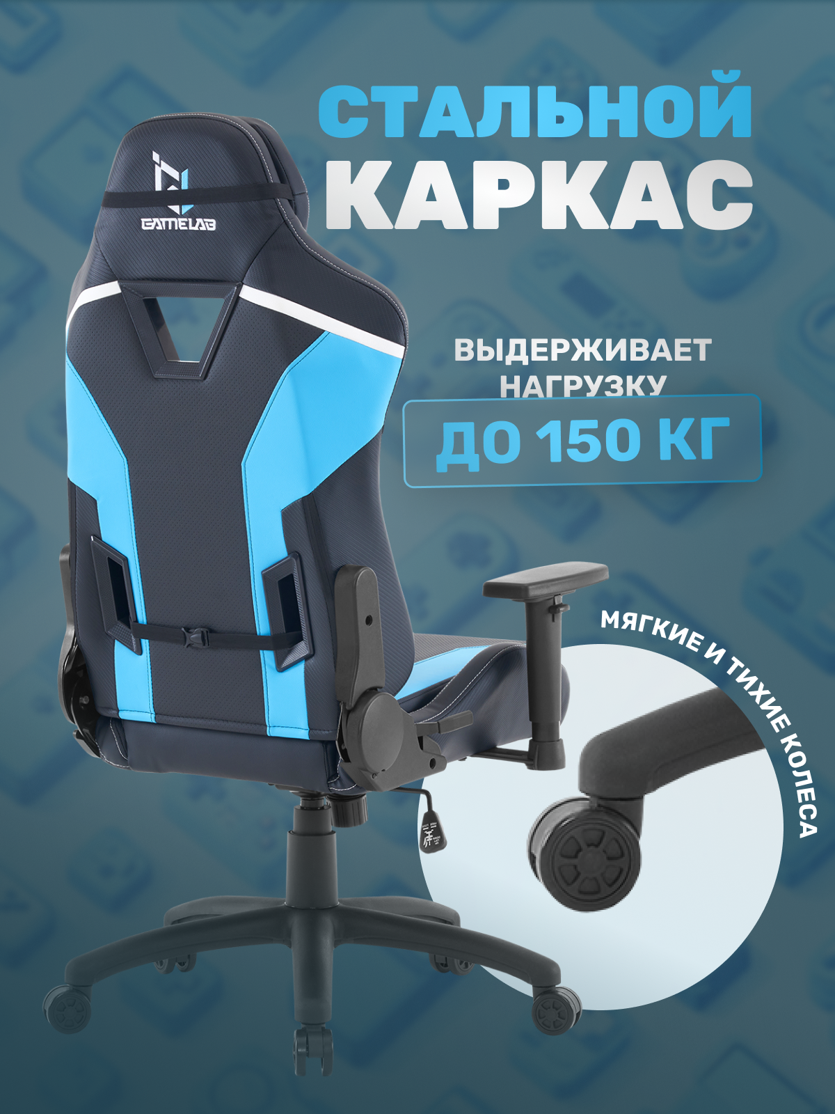 Игровое кресло компьютерное GAMELAB BLAST Azure Blue, черный/синий, экокожа: сравнение цен, характеристики, фото, актуальное наличие и цены.