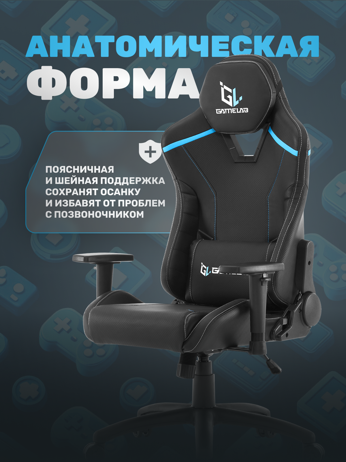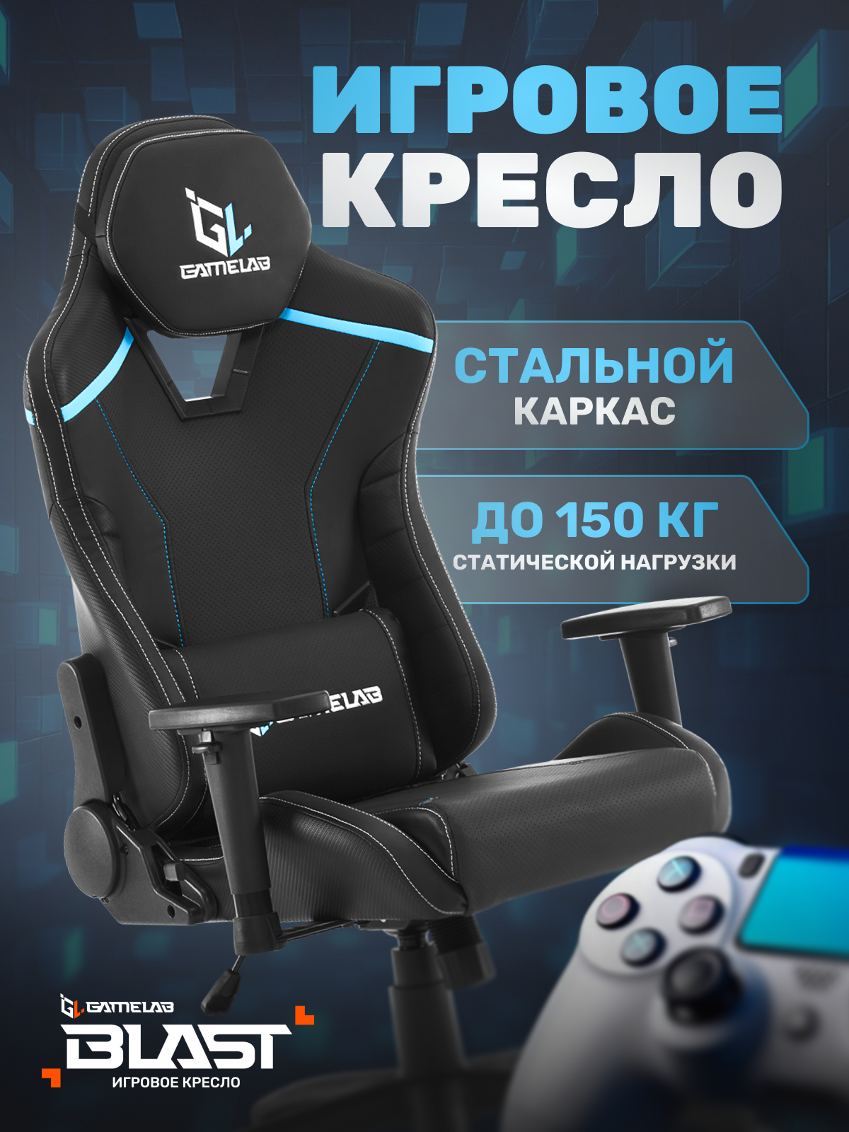 Игровое компьютерное кресло GameLab Blast в цветовом решении Jet Black рассчитано на нагрузку до 150 кг. Нейлоновая крестовина дополнена прорезиненными колесиками для удобного перемещения, сиденье и спинка обиты экокожей, установлены пластиковые 2D-подлокотники. Модель оснащена газовым лифтом четвертого класса, механизмом качания топ-ган и поддержкой регулировки наклона от 90° до 155°. Допускается настройка высоты сиденья в пределах 50-60 см. Вес конструкции не превышает 19 кг.