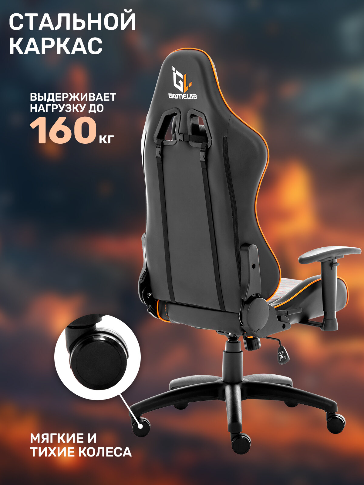- Стильный «геймерский» дизайн - Высокоплотный пенный наполнитель - Надежная стальная рама с толщиной стенок 1.2 мм - Прочная эко-кожа на спинке и сиденье - Усиленная строчка на сиденье, спинке и контуре кресла - Раскладываемая спинка для максимального комфорта - Механизм топган с блокировкой качания - Регулируемые 2D подлокотники из полиуретана - Настраиваемая высота кресла - Газлифт 4 класса - Максимальная нагрузка - до 160 кг - Основание из прочного нейлона - Тихие и надежные 60 мм колеса из полиуретана - Эргономичные подушки под шею и поясницу - Вышитые логотипы GL на кресле и подушках