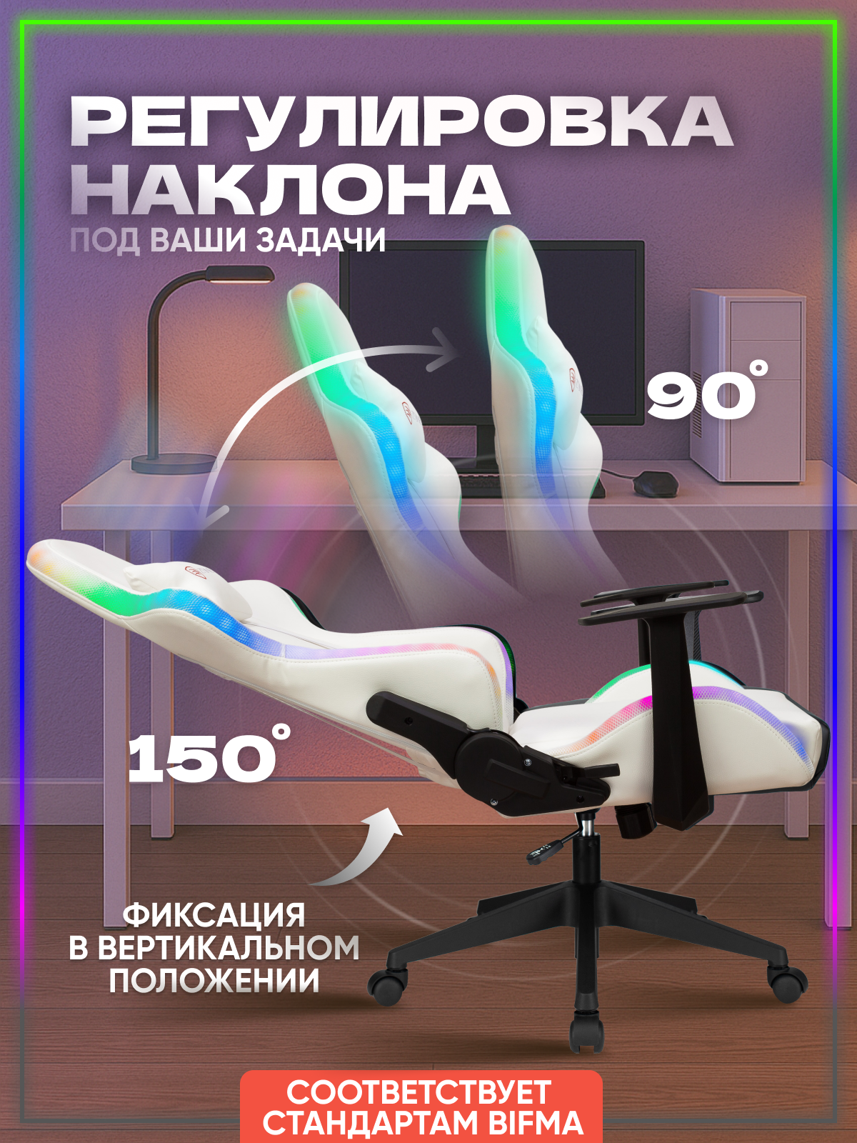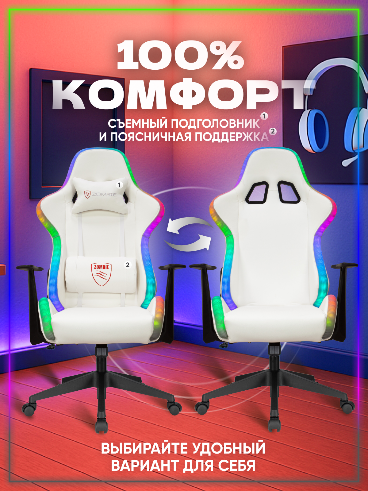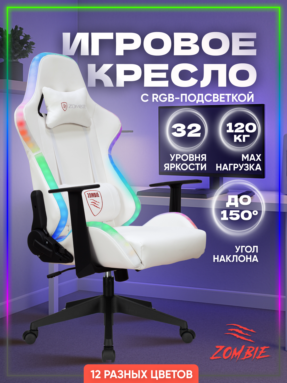 Кресло компьютерное игровое офисное для геймеров Бюрократ с RGB подсветкой и подголовником, экокожа, текстиль, белое, ZOMBIE GAME RGB: сравнение цен, характеристики, фото, актуальное наличие и цены.