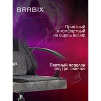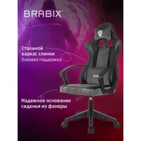 Купить Кресло компьютерное игровое офисное геймерское, стул на колесиках для школьника и взрослого, 2 подушки, экокожа/велюр, черное/серое, Brabix, 533216 с доставкой по всей России.