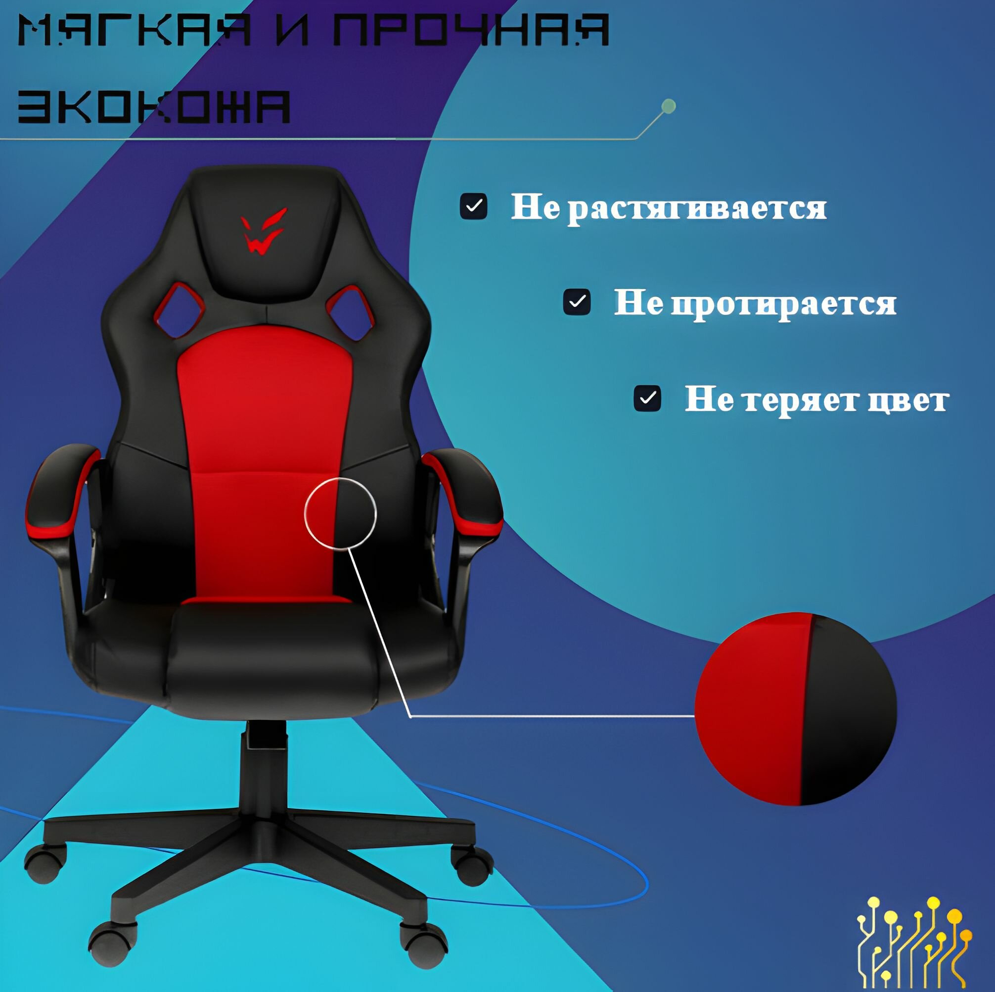 Модель GoodsMart - это стильное игровое кресло с удобной конструкцией и высококачественными материалами. Благодаря своей эргономичности и устойчивости, оно подходит для длительных игровых сессий, обеспечивая комфорт и поддержку для пользователей весом до 150 кг. Обивка из экокожи и ткани обеспечивает хорошую терморегуляцию и легко чистится, а поролоновый наполнитель гарантирует мягкую посадку и сохранение формы. Подголовник также снижает нагрузку на шейный отдел, делая кресло еще более комфортным.