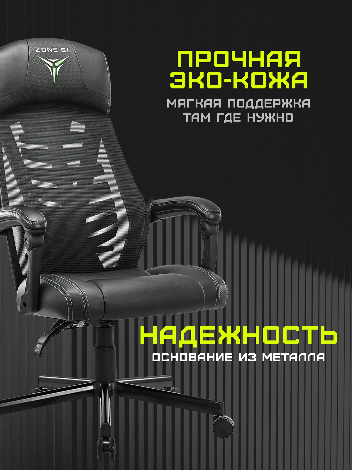 Купить Игровое кресло компьютерное ZONE 51 FREELANCER P3 Black-Green, черный/зеленый, сетка/искусственная кожа с доставкой по всей России.