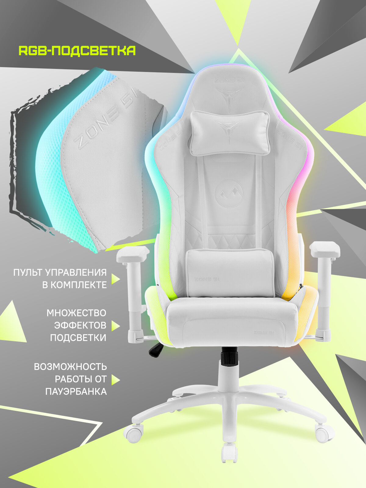 Компьютерное игровое кресло ZONE 51 FROST RGB - отличный выбор для тех, кто ценит комфорт, функциональность и стиль.