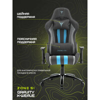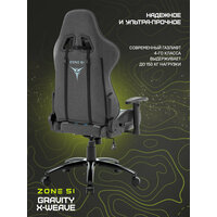 ZONE 51 GRAVITY X-Weave оборудовано 2D подлокотниками, которые могут изменять высоту (вверх-вниз) и поворачиваться (влево-вправо). Выполнены они из мягкого полиуретана. Благодаря им можно провести индивидуальную настройку под любого пользователя, за счет этого снижается нагрузка на предплечья.