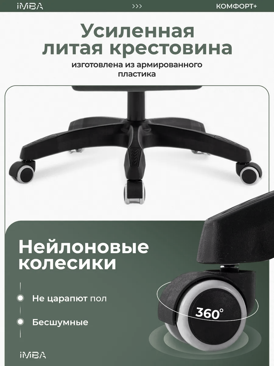 с газлифтом, с колесами (роликами), с подголовником, с подлокотниками, с подставкой для ног, с поясничным упором