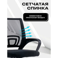 механизм качания, мягкие подлокотники, мягкое сиденье, прорезиненные колесики, спинка из сетки, фиксация механизма качания