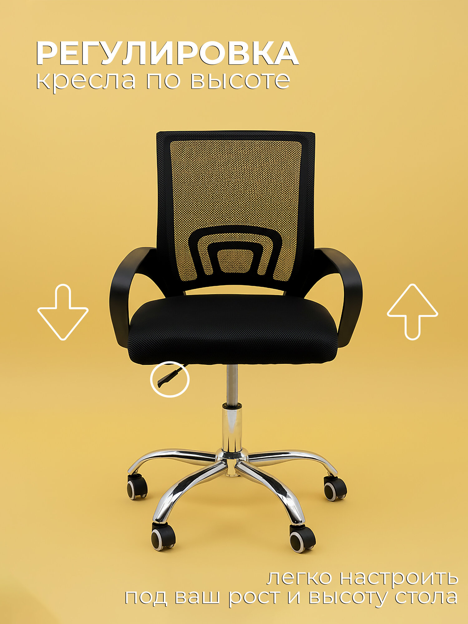 с газлифтом, с колесами (роликами), с подголовником, с подлокотниками