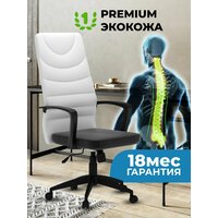 Кресло компьютерное офисное ортопедическое Byroom Office CASE, Стул игровой рабочий со спинкой и подлокотниками на колесиках для дома кабинета, бело-серый