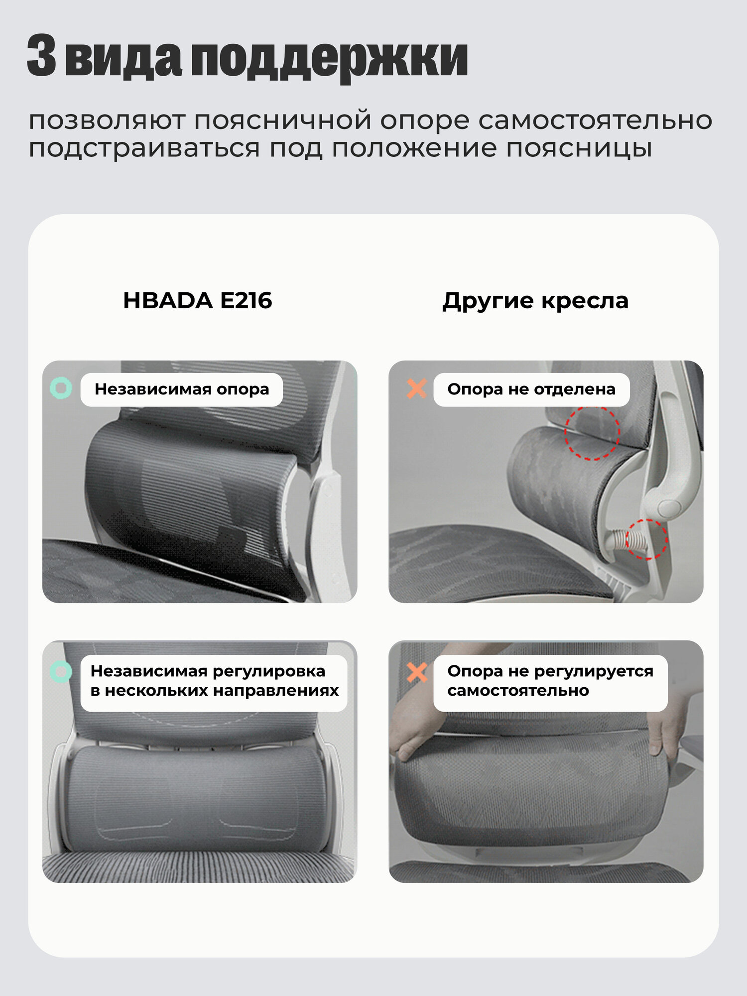 Кресло компьютерное ортопедическое Hbada P2 Pro+ E216WVD выделяется своей инновационной системой поддержки, разработанной для устранения дискомфорта, обеспечивая поддержку шеи, талии и плеч. Эта система поддерживает шею, поясницу и плечи, обеспечивая комфортное положение. Кресло протестировано по стандарту BIFMA X5.1. Эластичная поясничная поддержка имеет изогнутую форму, интеллектуальное отслеживание положения вашей талии (автоподстройка влево/вправо и вперед/назад) - все это создаст невероятный комфорт при использовании. • вверх/вниз 5 см • наклон 10° • поворот 5° 2D-подголовник с регулировкой обеспечивает поддержку шеи, подстраиваясь под разную высоту и позу. Наклоняетесь ли вы вперед или сидите прямо кресло остается близко к вашей шее, снимая давление на позвоночник во время длительного сидения. • Вверх/вниз: 13 см • Поворот 40° 3D-регулируемые подлокотники. Мягкие подлокотники - упругая поддержка без давления на локти. Двигаются гибко для приятной поддержки рук. Свободно регулируйте их в 3 измерениях для поддержки рук и расслабления плеч: • Вверх/вниз: 7,5 см • Вперед/назад: 4 см • Поворот: 40° Двухзонная подставка для ног и анатомическая форма отлично снимает нагрузку с ног. Кресло компьютерное сетка имеет регулируемое сиденье с двойной сеткой Fusion Dual Mesh. Седловидный дизайн отлично снимает нагрузку с позвоночника. Сиденье сделано из суперсетки высокой упругости (3D объемная и воздухопроницаемая), обеспечивает точную поддержку для пользователей разного телосложения. Сетка высокой эластичности имеет свои плюсы: • Не проседает при долгом сидении, высокая упругость • Отсутствие онемения ног при длительном сидении • Воздухопроницаемая сетка покрывает всю поверхность • Обеспечивает превосходную поддержку • Эффективное распределение давления • Европейский экологический стандарт • Крепкие полимерные волокна • Повышенная износостойкость Характеристики: Вес: до 150 кг. Рост: 155-190 см. Материал обивки: сетка. Регулировка высоты: да. Регулировка подлокотников: вверх/вниз: 7,5 см, вперед/назад:4 см, поворот 40. Регулировка спинки: до 135°. Поддержка поясницы: есть. Регулировка поясничной опоры: 3D (вверх/вниз 5 см, наклон 10°, поворот 5°). Материал поясничной опоры: сетка. Материал сиденья: сетка. Регулировка глубины сидения: нет. Подъем сидения: 7,5 см. Вращение 360°: есть. Газлифт: 4 класс. Регулировка подголовника: 2D (вверх/вниз: 13 см, поворот 40°). Материал подголовника: сетка. Подставка для ног: есть. Крестовина: нейлон. Материал колес: полиуретан. Механизм: топган люкс. Ортопедическое кресло обеспечивает более здоровую посадку и позволяет работать сосредоточеннее.