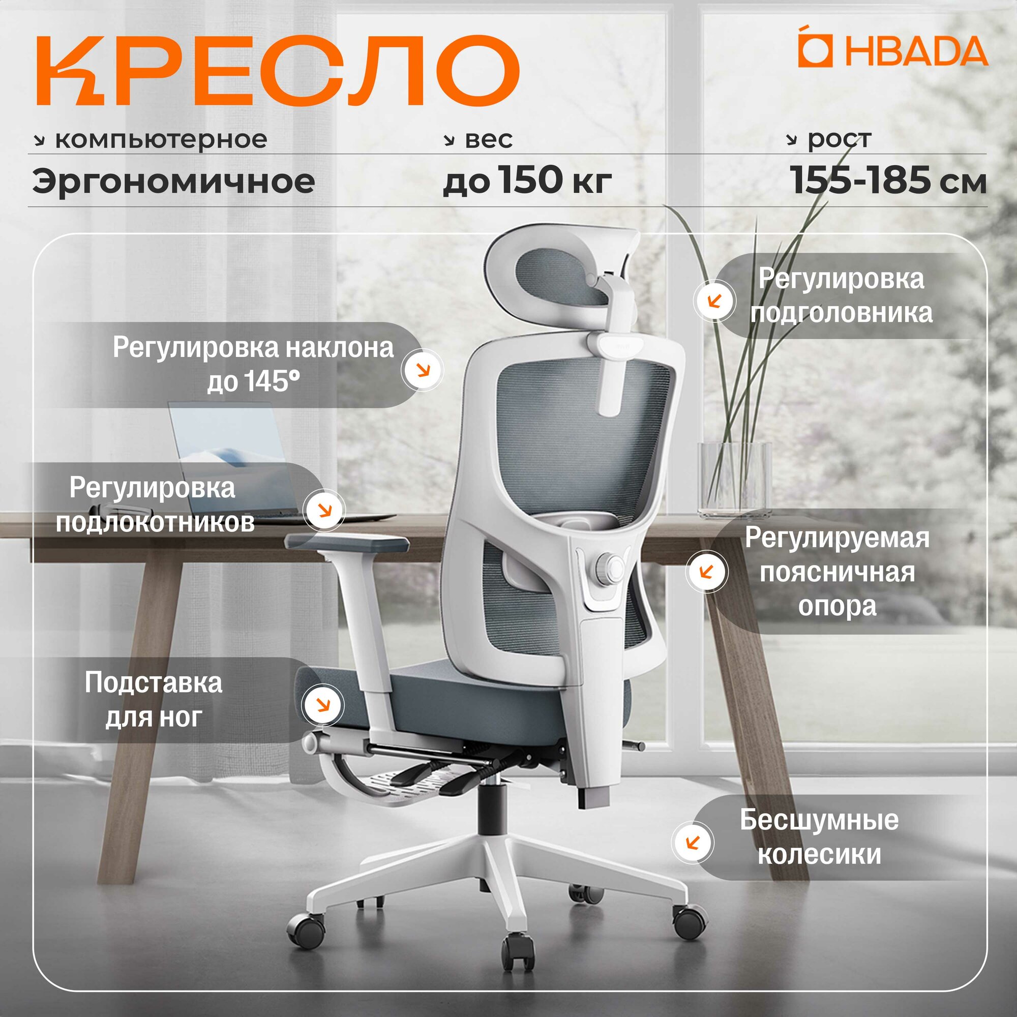 с газлифтом, с колесами (роликами), с подголовником, с подлокотниками, с подставкой для ног, с поясничным упором