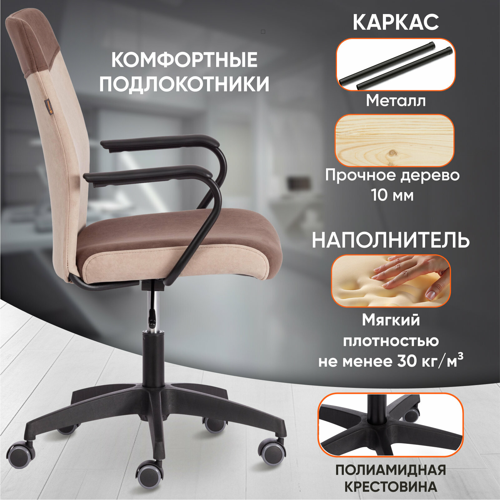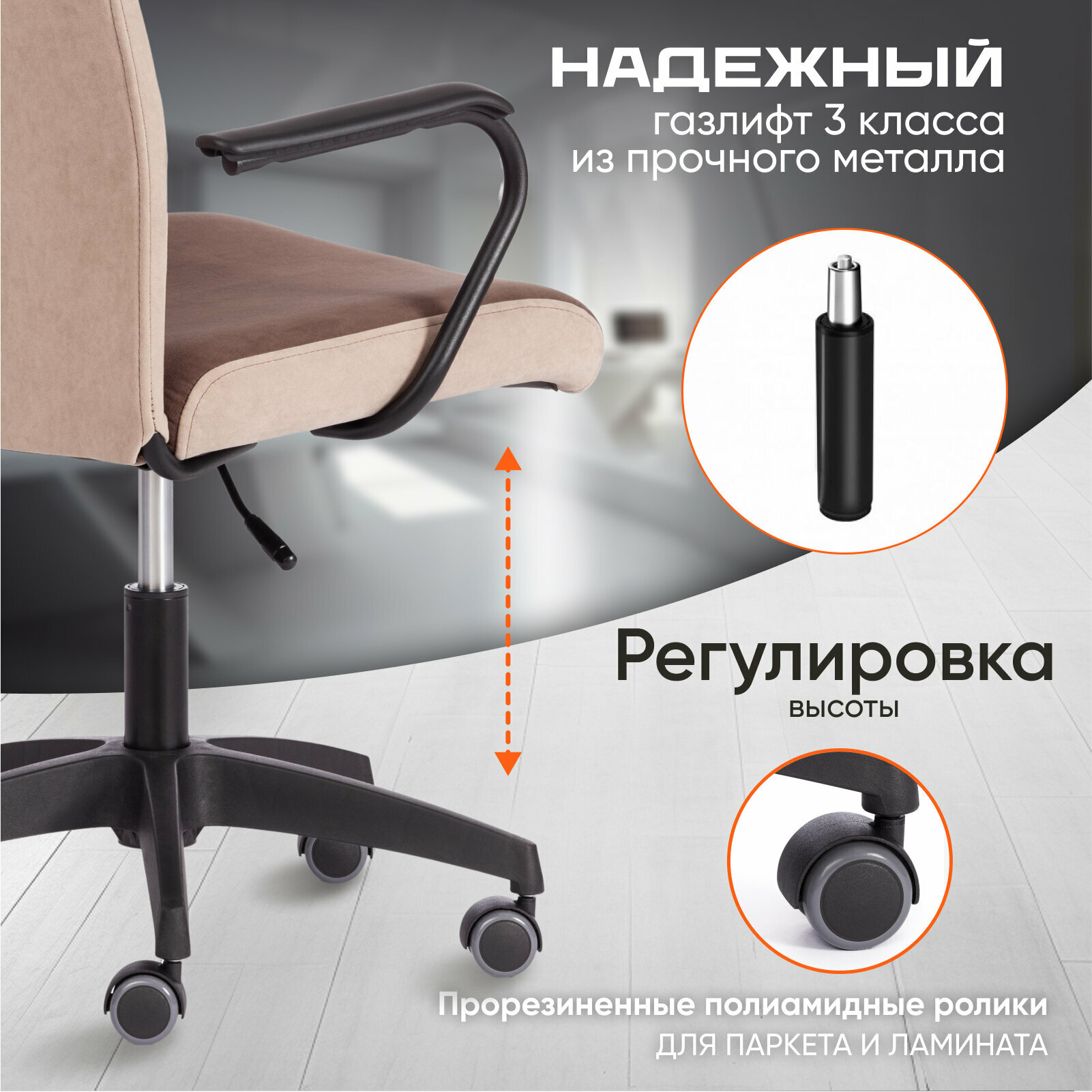 | Конструктивные особенности | с колесами (роликами), с подставкой для ног, с подлокотниками, с газлифтом |