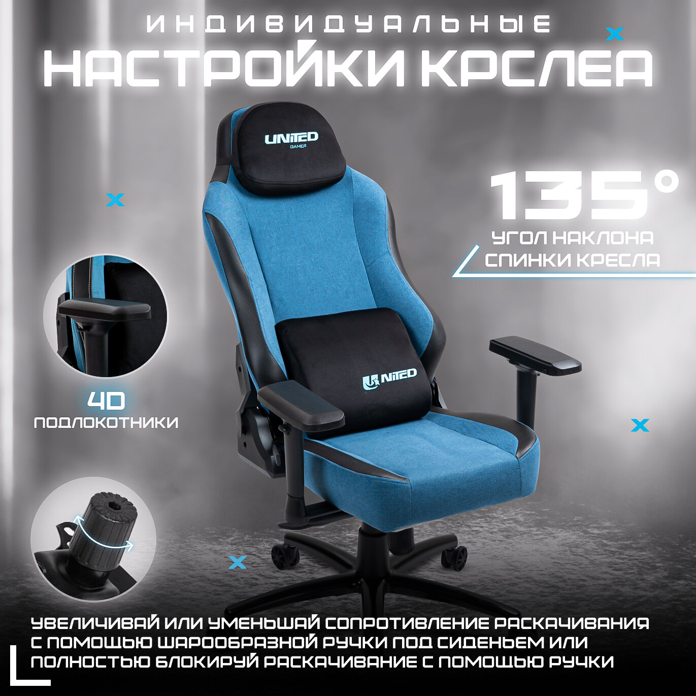 Купить Кресло компьютерное UNITED GAMER COSMIC, ткань, мультиблок, синий с доставкой по всей России. Кресло компьютерное UNITED GAMER COSMIC, ткань, мультиблок, синий: сравнение цен, характеристики, фото, актуальное наличие и цены.