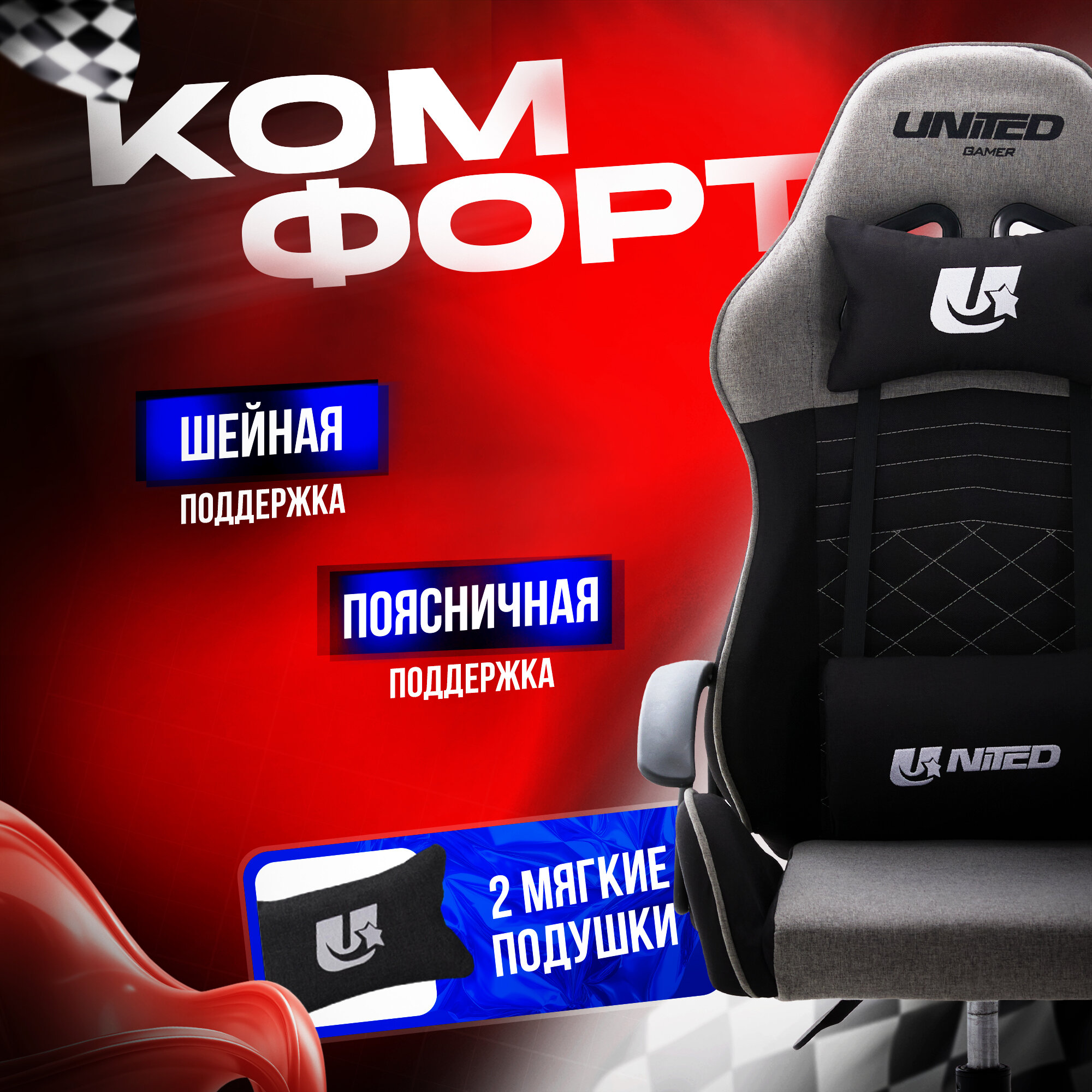 Купить Кресло компьютерное UNITED GAMER RIDER, светло-серый/черный, ткань с доставкой по всей России.