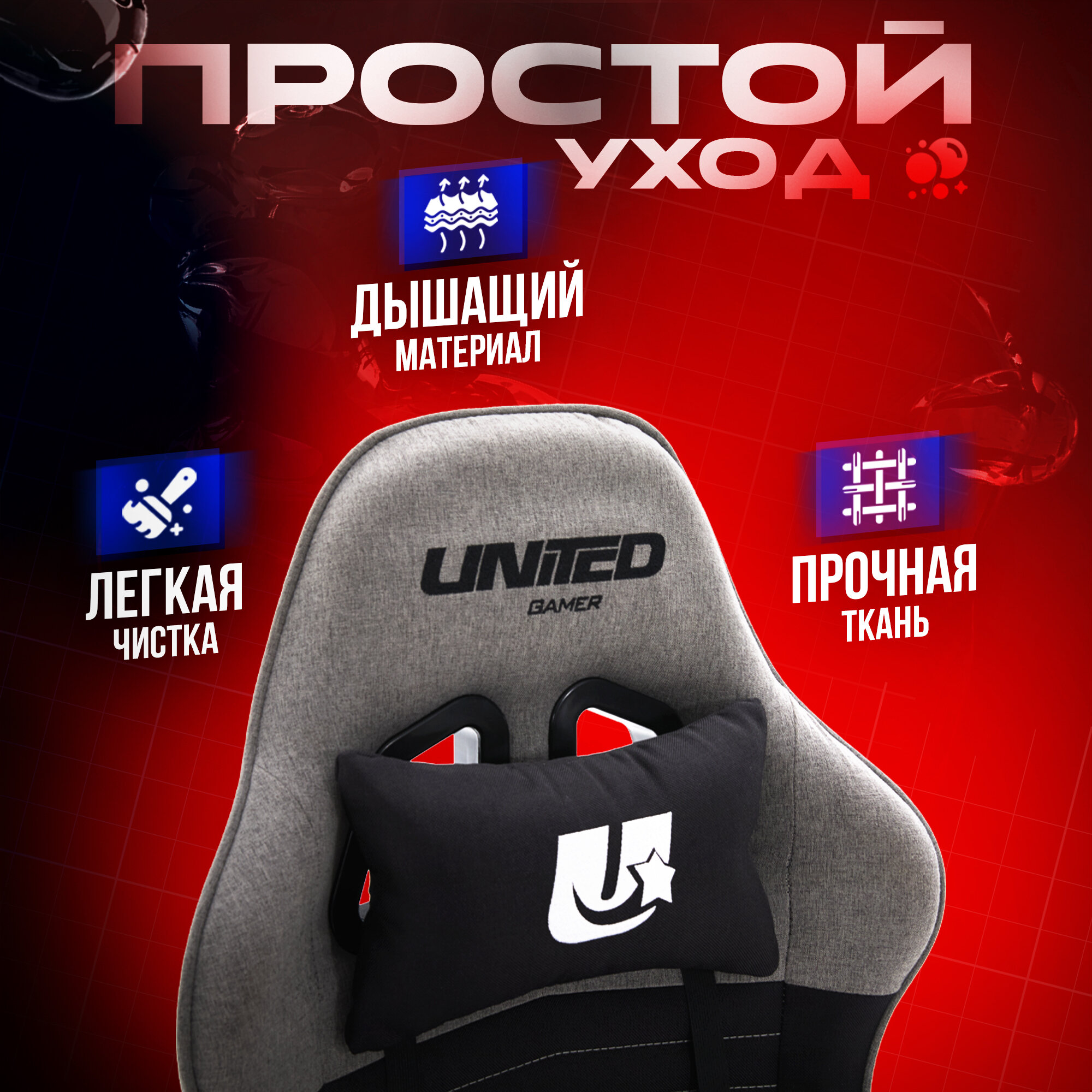 Кресло компьютерное UNITED GAMER RIDER, светло-серый/черный, ткань