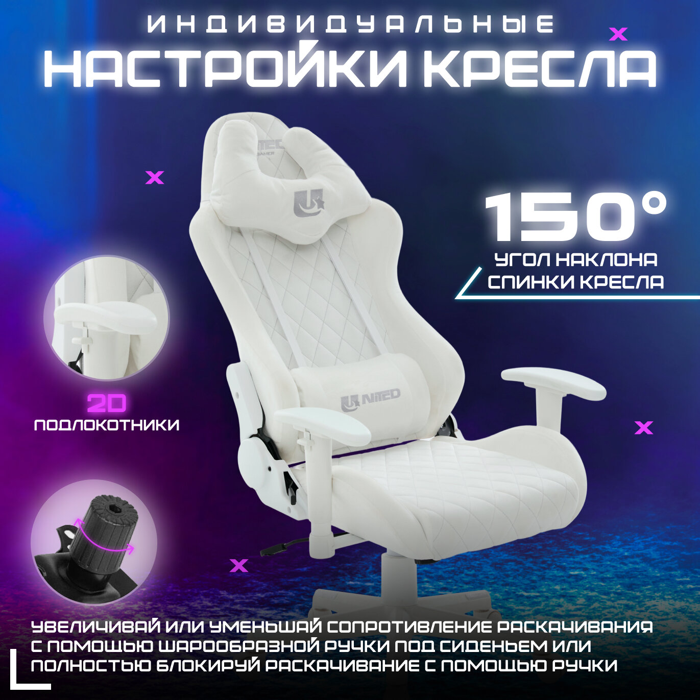 Купить Кресло компьютерное UNITED GAMER WARRIOR, белый велюр с доставкой по всей России. Кресло компьютерное UNITED GAMER WARRIOR, белый велюр: сравнение цен, характеристики, фото, актуальное наличие и цены.