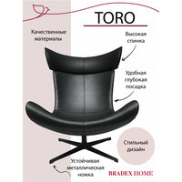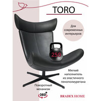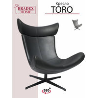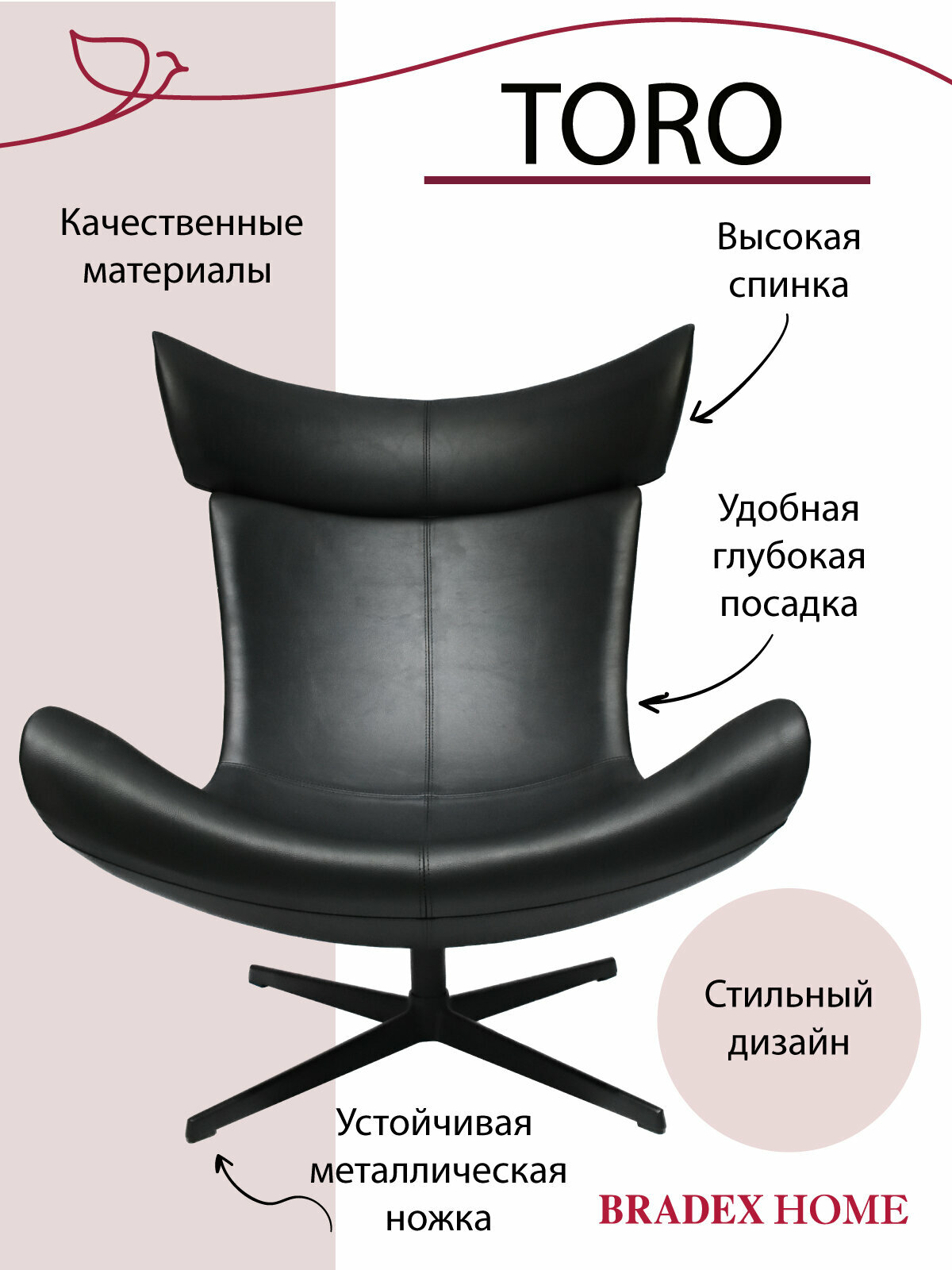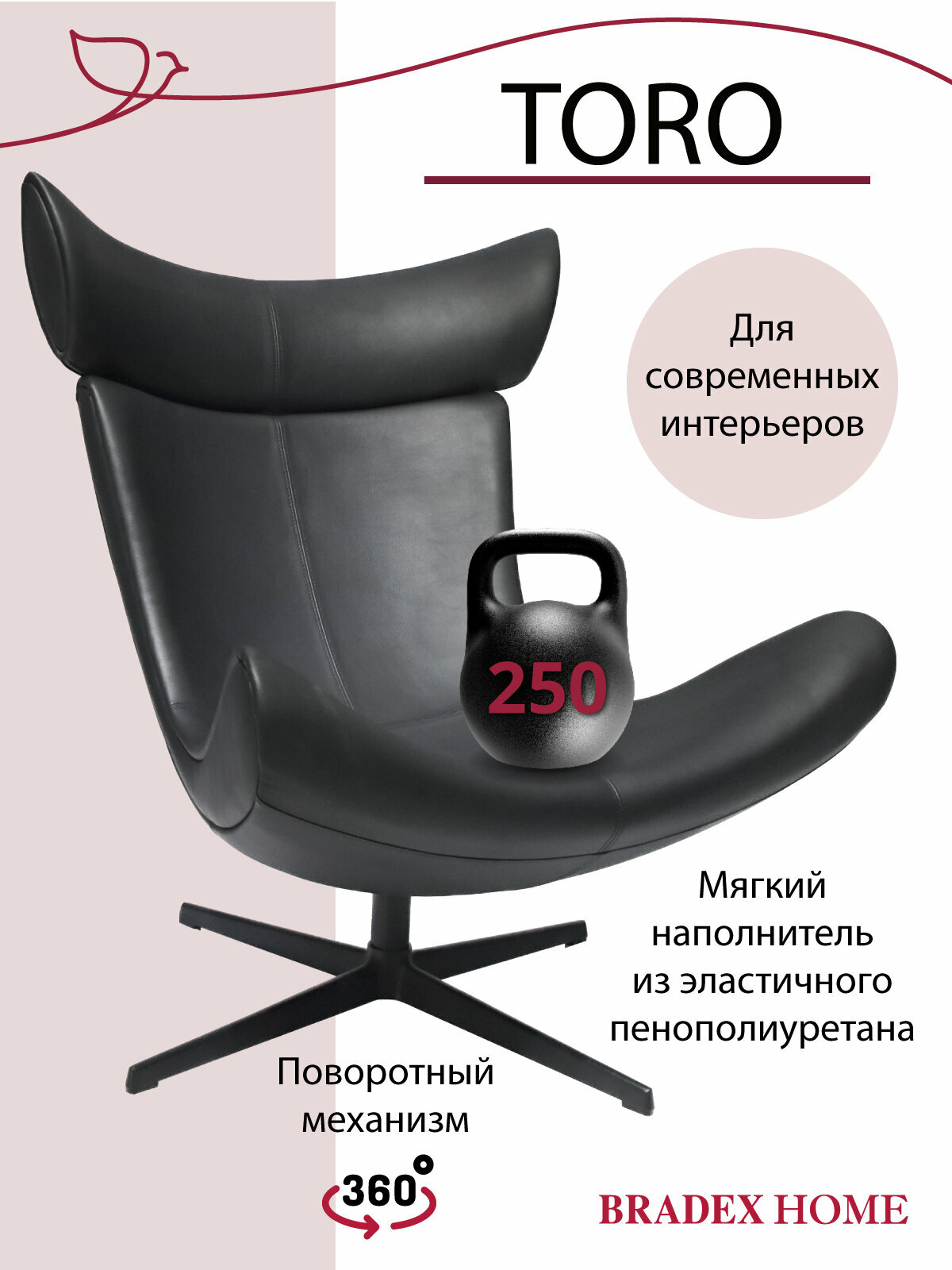 Купить Кресло кожаное мягкое TORO черное, для отдыха, взрослое крутящееся круглое на ножке, офисное для руководителя, для дома в гостиную, прессованная кожа с доставкой по всей России.
