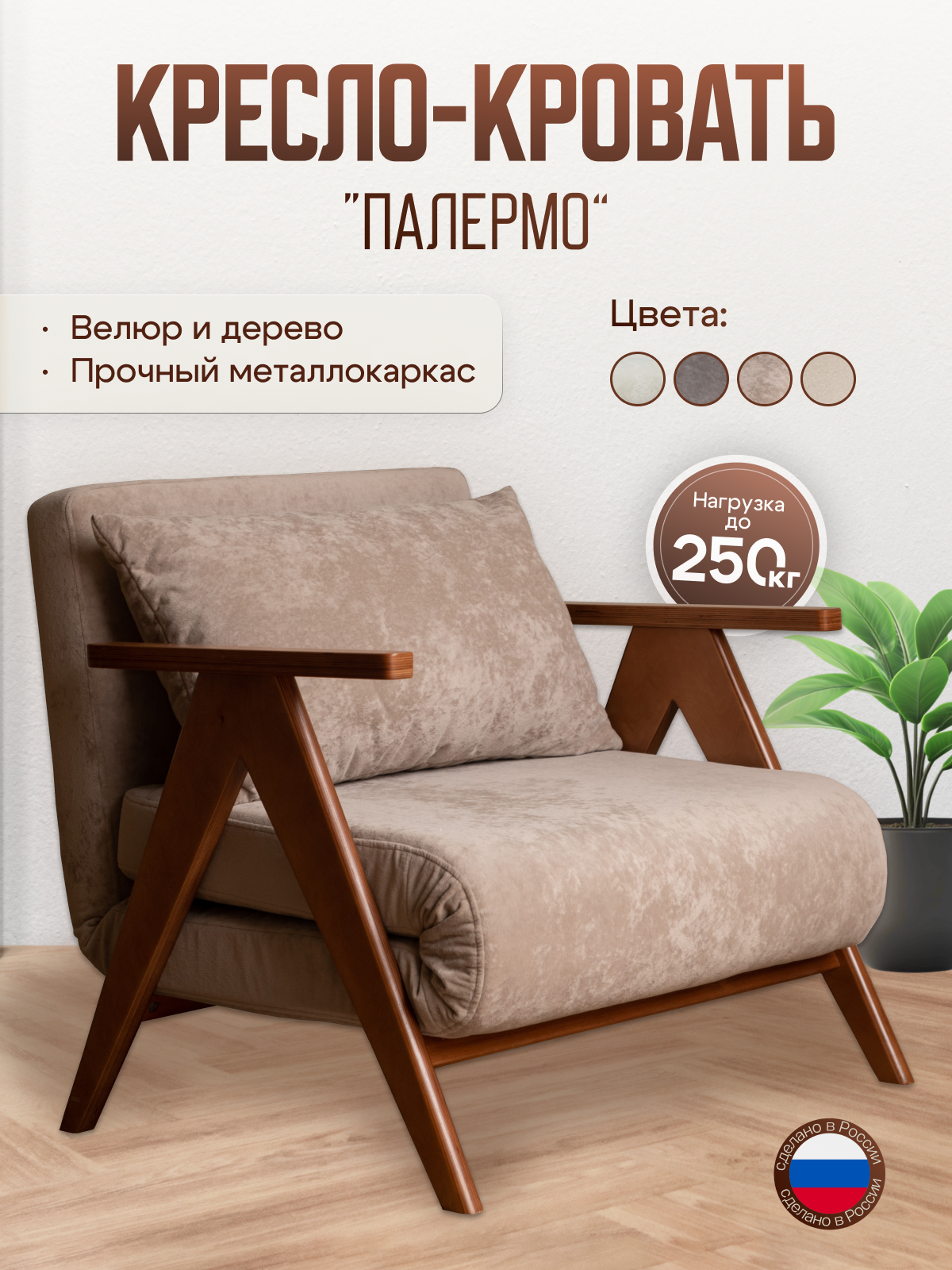 Кресло-кровать ARCA Палермо, коричневое, микровелюр, с подлокотниками, 80×83 см: сравнение цен, характеристики, фото, актуальное наличие и цены.