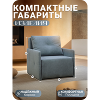 Кресло-кровать Эрвин бюджетный и компактный вариант спального места. Благодаря своим компактным размерам и ненавязчивостью отлично впишется в любой интерьер. Приятной неожиданностью станет небольшое место хранения, которое позволит вместить спальные принадлежности. Практичное решение для детской, небольшой гостиной, студии или кухни. При своих скромных размерах он трансформируется в полноценное односпальное место. Тканевая обивка легко поддается чистке . Размеры дивана (ШхГхВ): 96 х 95 х 61 см. Размеры спального места (ШхГ): 71 х 198 см. Механизм трансформации: Еврософа.