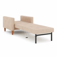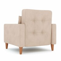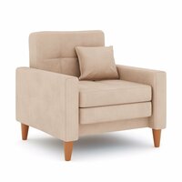 Кресло-кровать выполнено в стильном кремовом велюре, который придает ему элегантный и современный вид. Этот материал приятен на ощупь и прост в уходе, что делает его долговечным и надежным.