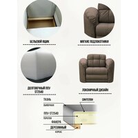 Высокая надежность и удобство мебельного изделия Кресло-кровать Император 4 коричневый велюр, 120х94х92 см, с ящиком для белья гарантируется прочным каркасом из правильно просушенной древесины. Наполнение устойчиво к большим нагрузкам, не деформируется, а малый вес позволяет без труда перемещать мебель. внимание: настройки цветопередачи экрана вашего устройства могут искажать реальный цвет (оттенок) ткани. Специфика производства допускает незначительные отклонения в цветовой гамме отгружаемых изделий в разных партиях выпуска, что не является основанием для возврата или обмена продукции. При необходимости отправим вам - живое фото ткани в чат, после оформления заказа.