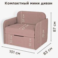 Мини-диван Бондо выдвигается вперед и спальное место становится 190/90 см. Приобретается как в детскую комнату, так и полноценным спальным местом для взрослого человека. Габариты - (ДхШхВ) 1000*830*870 см. Корпус кровати выполнен из ЛДСП, а обивка премиальная ткань - Тедди. Отличительная прочная особенность: - основание кровати - металлический каркас собственного производства с ламелями; - максимальный вес нагрузки - 150 кг. - высота подушки(матраса) в разложенном виде 10 см; - Вместительный ящик