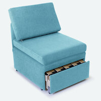 1 подушка, 1 основание кресла, 1 выкатной механизм с ящиком, 1 спинка, 4 болта, 4 гайки, 1 ключ, 2 антискользящих подпятника, 1 вкладыш с информацией, 1 гарантийный талон, 1 инструкция по сборке.
