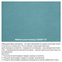 Материал обивки: Велюр Candy (Состав: полиэстер (PES) 100%. Показатель устойчивости к истиранию составляет 50 000 циклов). Съемный чехол только на подушке спинки.
