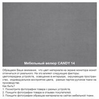 Материал обивки: Велюр Candy 14 (Состав: полиэстер (PES) 100%. Показатель устойчивости к истиранию составляет 50 000 циклов). Съемный чехол только на подушке спинки.