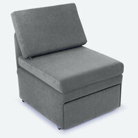 1 подушка, 1 основание кресла, 1 выкатной механизм с ящиком, 1 спинка, 4 болта, 4 гайки, 1 ключ, 2 антискользящих подпятника, 1 вкладыш с информацией, 1 гарантийный талон, 1 инструкция по сборке.