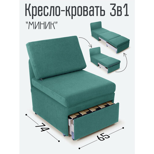 Кресло-кровать Миник 3в1: кресло, кровать, кушетка. 65х89х74 см, с ящиком, выкатной механизм трансформации, велюр Dream Mint: сравнение цен, характеристики, фото, актуальное наличие и цены.