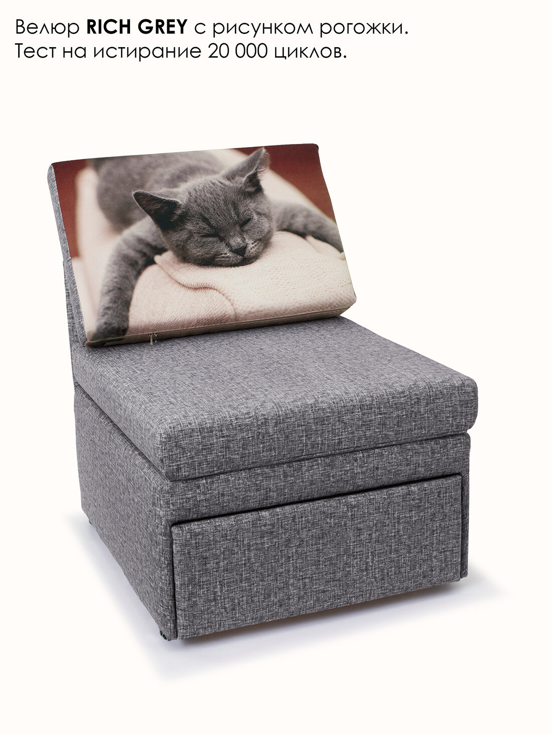 Купить Кресло-кровать Миник 3в1: кресло, кровать, кушетка. 65х89х74 см, с ящиком, выкатной механизм трансформации, велюр Rich Grey Котенок спит с доставкой по всей России.