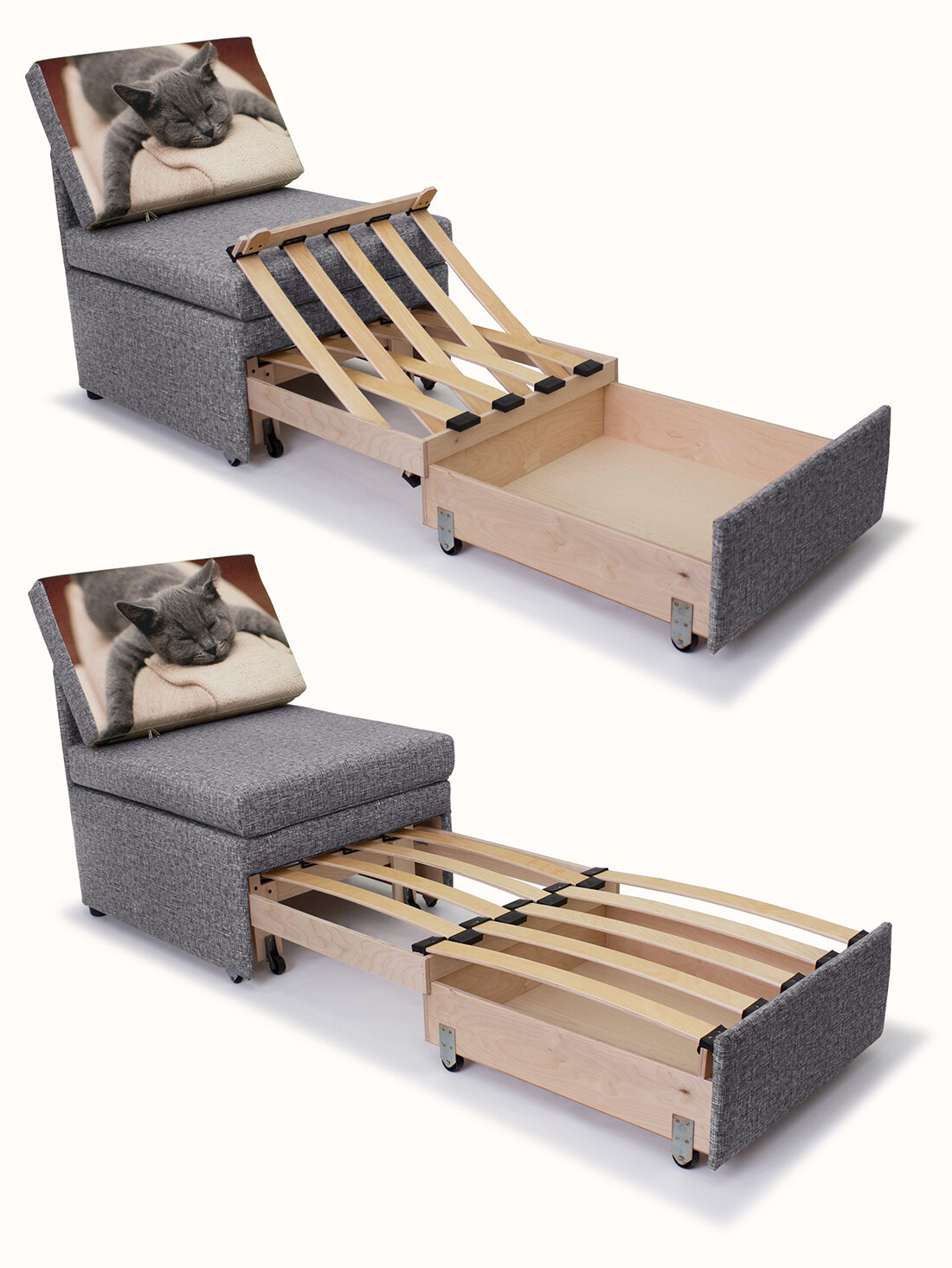Кресло-кровать Миник 3в1: кресло, кровать, кушетка. 65х89х74 см, с ящиком, выкатной механизм трансформации, велюр Rich Grey Котенок спит