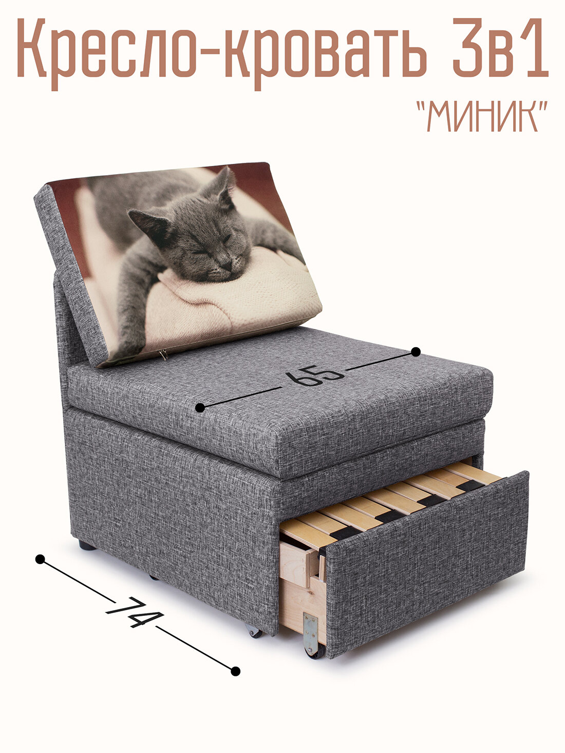 Кресло-кровать Миник 3в1: кресло, кровать, кушетка. 65х89х74 см, с ящиком, выкатной механизм трансформации, велюр Rich Grey Котенок спит: сравнение цен, характеристики, фото, актуальное наличие и цены.
