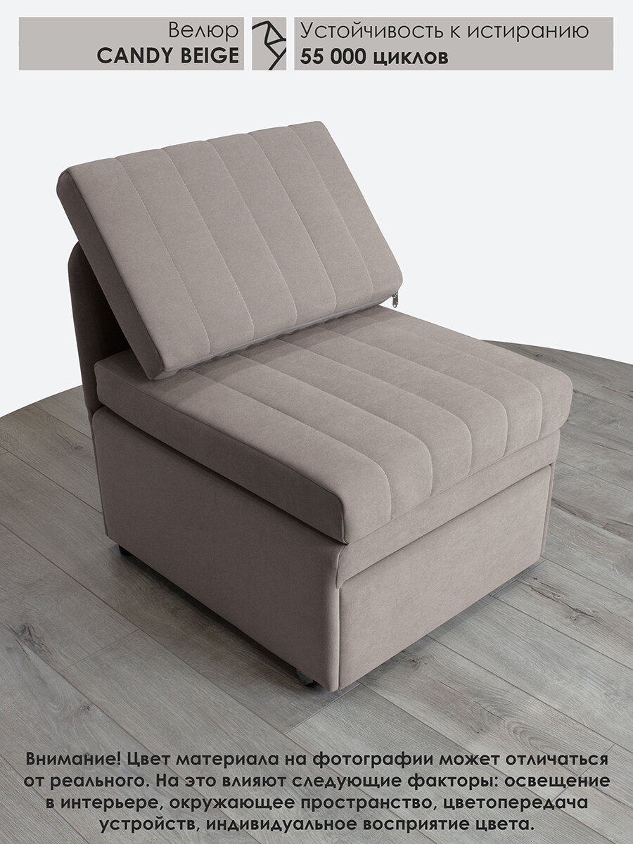 Материал обивки: Велюр Candy Grey (Состав: полиэстер (PES) 100%. Показатель устойчивости к истиранию составляет до 55 000 циклов). Съемный чехол только на подушке спинки.