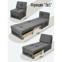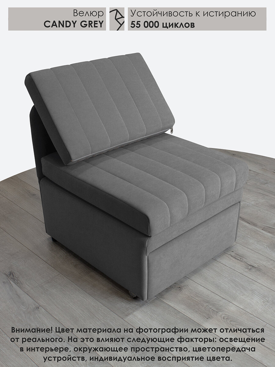 Материал обивки: Велюр Candy Grey (Состав: полиэстер (PES) 100%. Показатель устойчивости к истиранию составляет до 55 000 циклов). Съемный чехол только на подушке спинки.