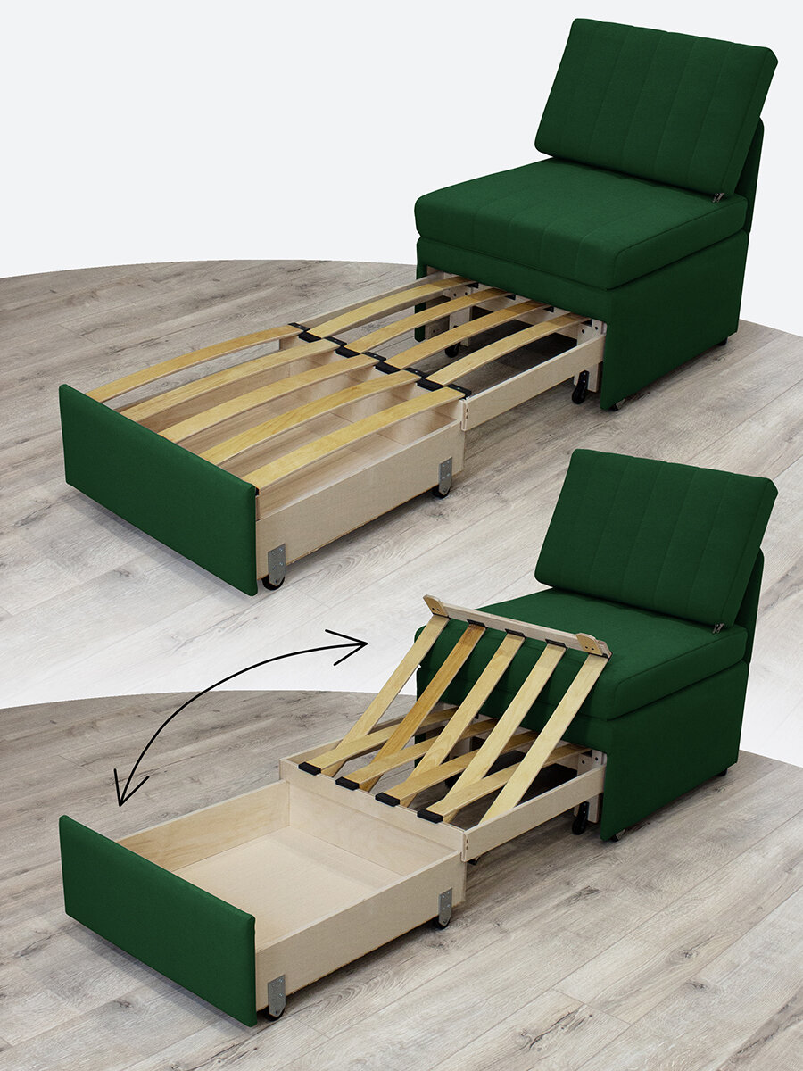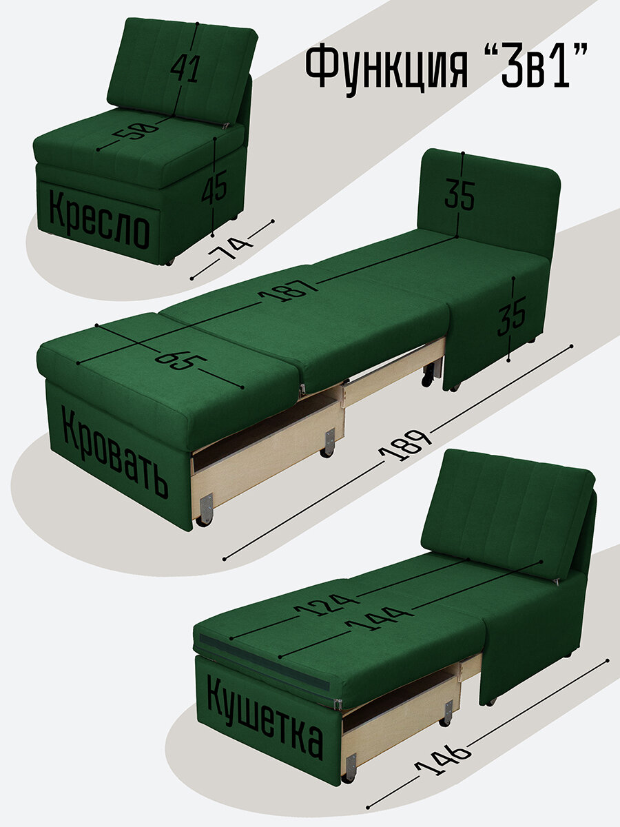 Кресло-кровать Миник 3в1, спальное место 65х187 см, с ящиком, выкатной механизм трансформации, велюр Dream Forest: сравнение цен, характеристики, фото, актуальное наличие и цены.